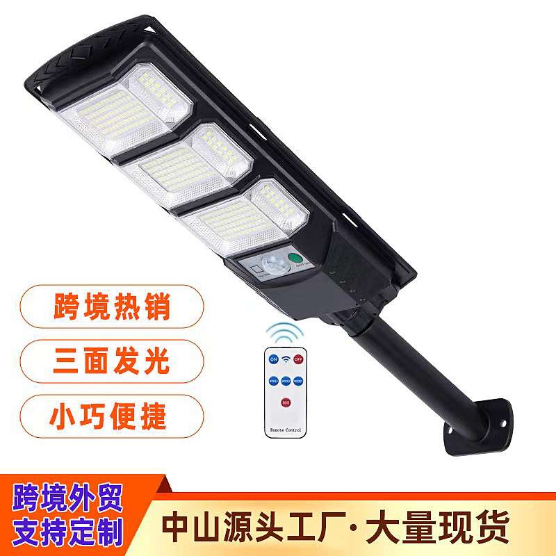 跨境爆款推荐太阳能路灯一体化感应三面发光户外防水壁灯