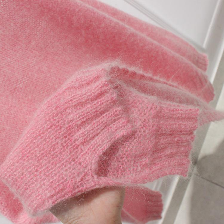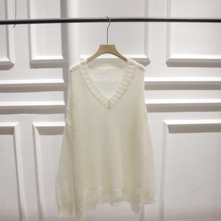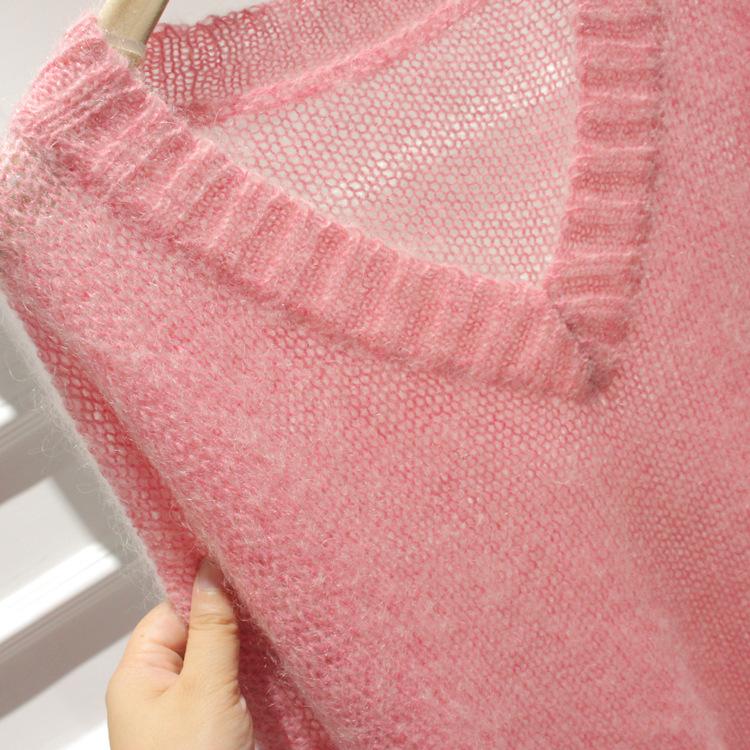 面料名称:化纤类混纺|主面料成分:马海毛|图案:纯色|厚薄:薄|款式:套头|版型:宽松型|领型:V字领|袖长:长袖|袖型:常规袖|上市年份/季节:2021年秋季|颜色:白色,粉色,灰色,蓝色,杏色|尺码:217|风格类型:清新甜美|主面料成分含量:30%及以下|风格:清新风|是否跨境货源:否
