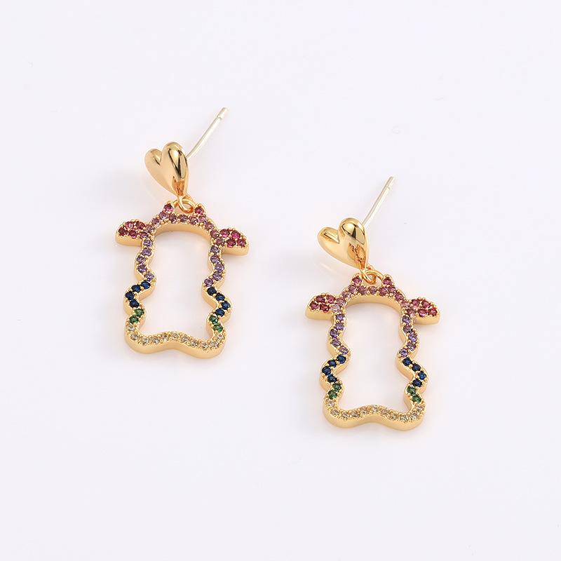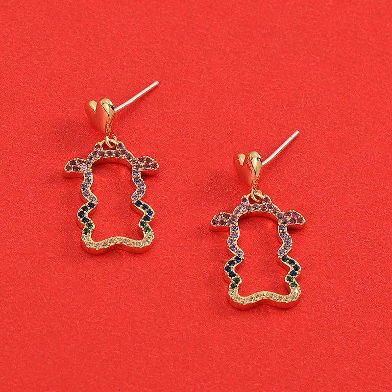 s925银针中国风新年彩虹色几何牛耳环牛气冲天原创设计萌宠牛耳饰 |