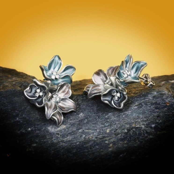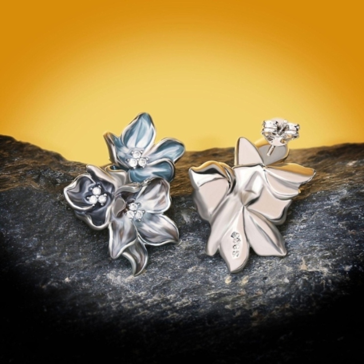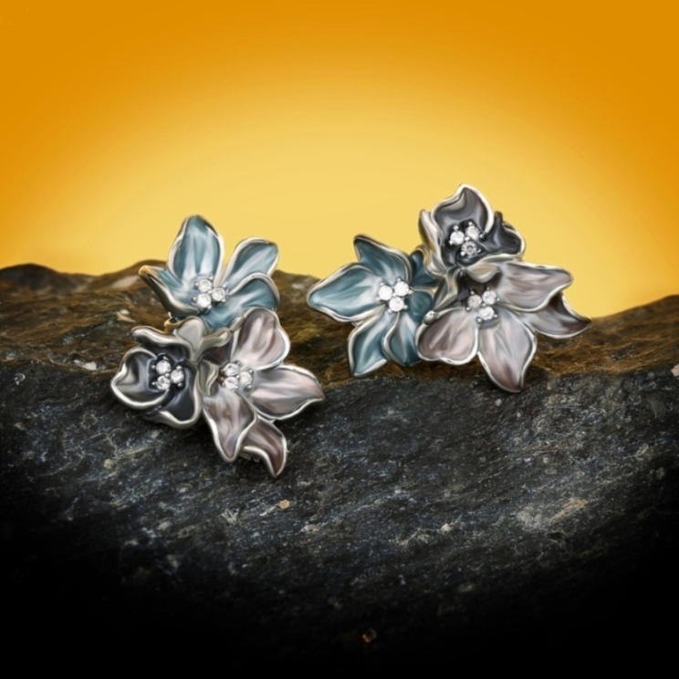 跨境wish速卖通简约中国风泼墨效果滴胶镶锆石复古花卉女耳钉耳饰 |