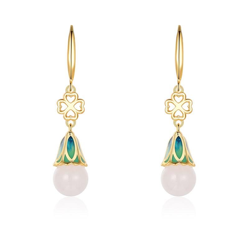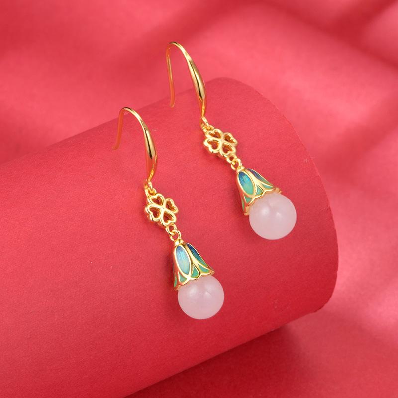 风格:国风|材质:玉|处理工艺:镶银|品牌:卡芭司|生产编号:BY5323|销售序列号:BY5323|种类:耳钉|样式:女式|造型:花卉|包装:独立包装|适用送礼场合:旅游纪念,员工福利,其他|加工定制:是|货号:BY5323|产地:广州|镶嵌材质:纯银镶嵌宝石|主要下游平台:京东,ebay,PDD,亚马逊,wish,快手,LINIO,SHEIN,速卖通,天猫,独立站,LAZADA,拼多多,shopee,抖音,垂类电商,其他|颜色:S925银镶和田玉幸运耳钉|主要销售地区:欧洲,南美,东南亚,北美,东北亚,中东,其他|有可授权的自有品牌:是|是否跨境出口专供货源:是|流行元素:图案,复古,流苏,几何,国潮|上市年份/季节:2022年夏季