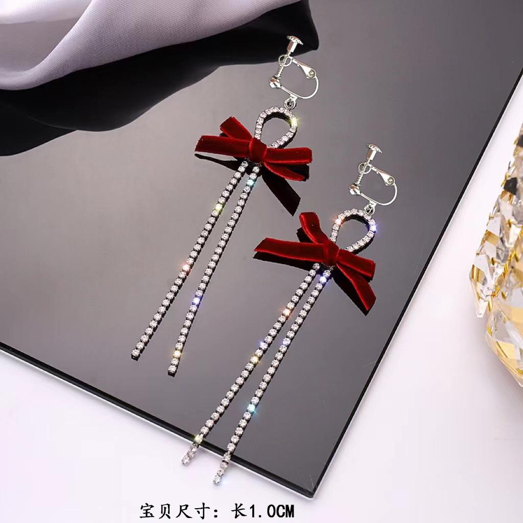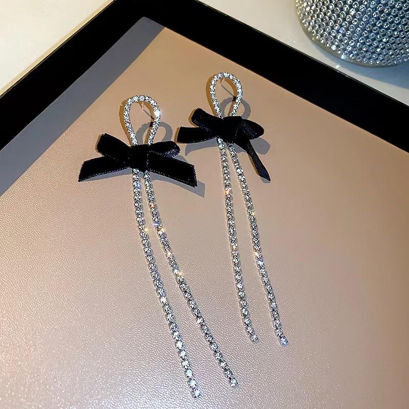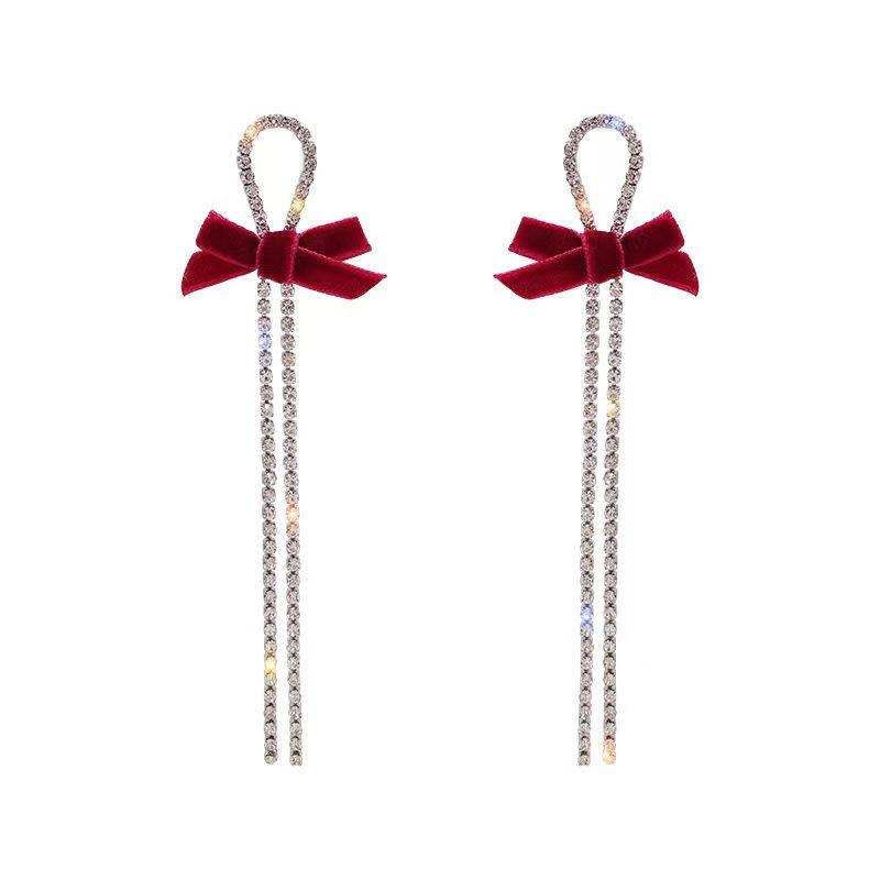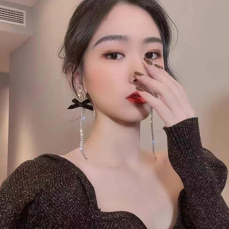 丝绒蝴蝶结长款流苏耳环网红个性气质百搭潮人耳坠新娘礼服耳饰品 |