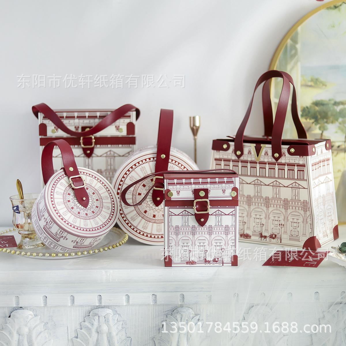 2022新款中式伴手礼礼物盒圆形订婚婚礼喜糖手提盒创意伴娘盒空盒 |