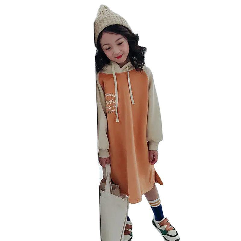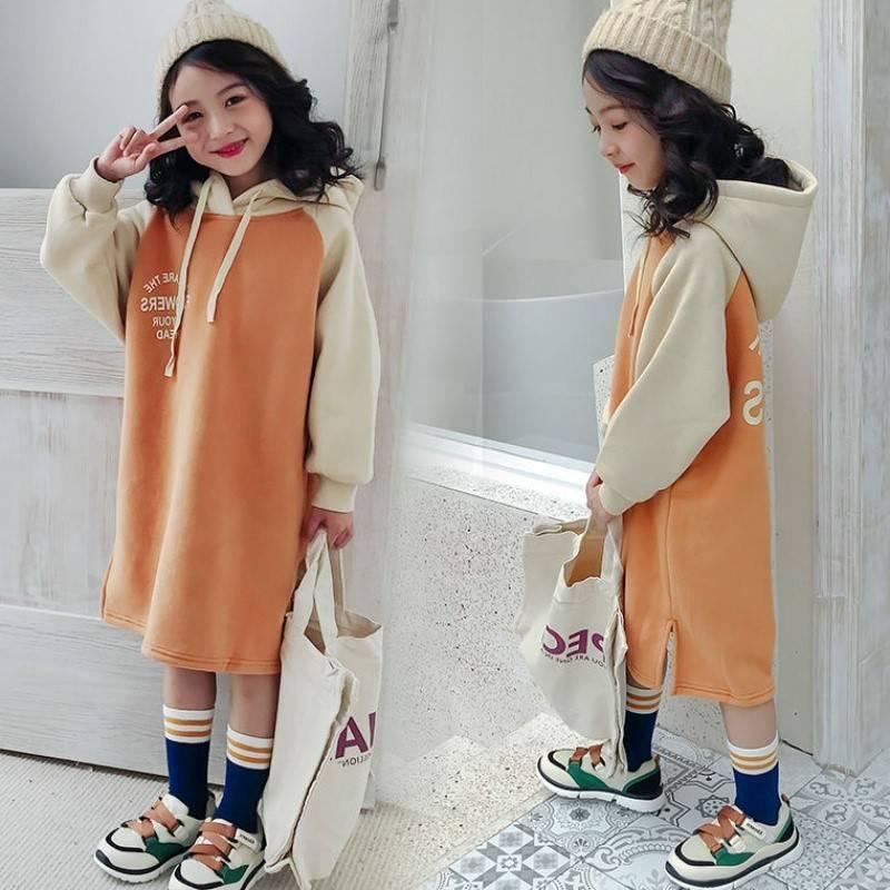 女童秋冬卫衣2022新款中大童洋气加绒加厚儿童中长款连帽卫衣裙子 |
