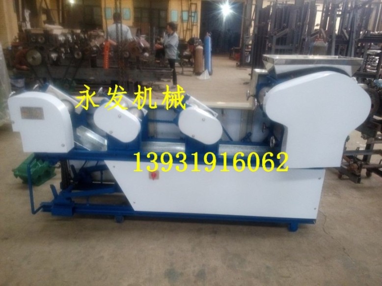 支持非标订做,如有需要,邢台永发机械欢迎联系我们。永发新型面条机价格厂家介绍永发新型多功能面条机,性能优越,由多组面辊排列式组合而成,自动跳条一次成型,无须人工投面,降低了人工劳动强度。采用轻皮带轮减速后链条传动,结构紧凑,操作方便,动力强劲,噪音低,效率高。面条机、挂面机、压面机、饺子皮机、混沌皮机面条机、面条机的价格、面条机厂家、面条机图片、面条机视频、面条机、小型面条机、多功能面条机、全自动面条机、电动面条机、家用面条大型机、自动爬杆面条机、面条机切刀,等米面机械永发面条机是一种新型面条流水线设备,该机从进料到出面连续作业,具有高产高效、省时省力、还可以生产混沌皮、饺子皮、生产的产品薄厚均匀可调,表面光洁,面条垂直,煮熟快,不糊汤,不粘连,口感更好,更换切刀,还可以加工出宽窄、粗细不同的面条。产品符合卫生标准要求,是宾馆,食堂,饭店,食品加工厂及个体饮食制作的理想机械产品。 |