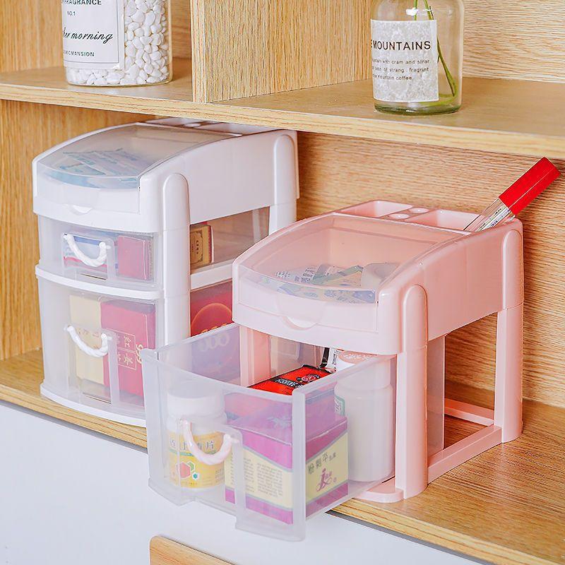 桌面收纳柜办公小号多层抽屉式化妆品收纳盒子塑料杂物饰品速卖通