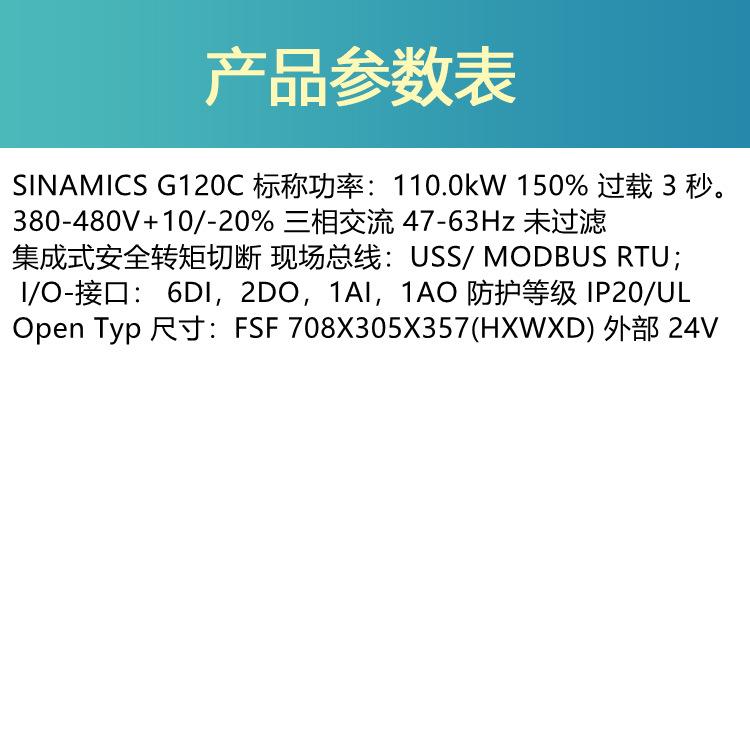 西门子变频器6SL3210-1KE32-1UB1 G120系列 480V 110kW无滤波器 |