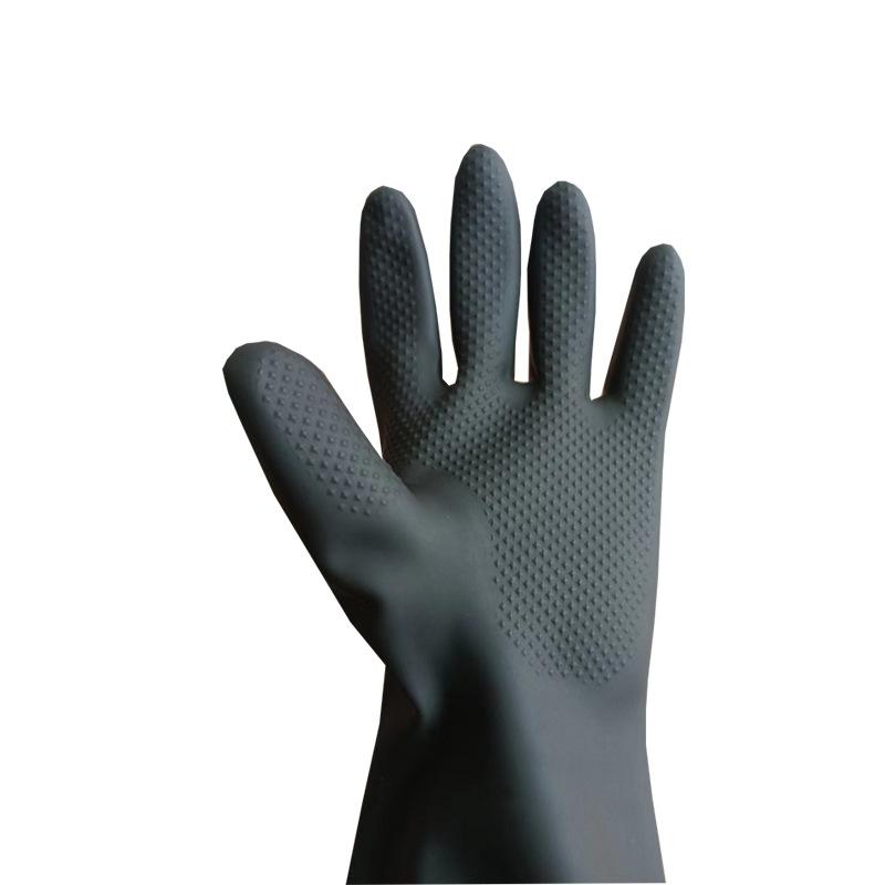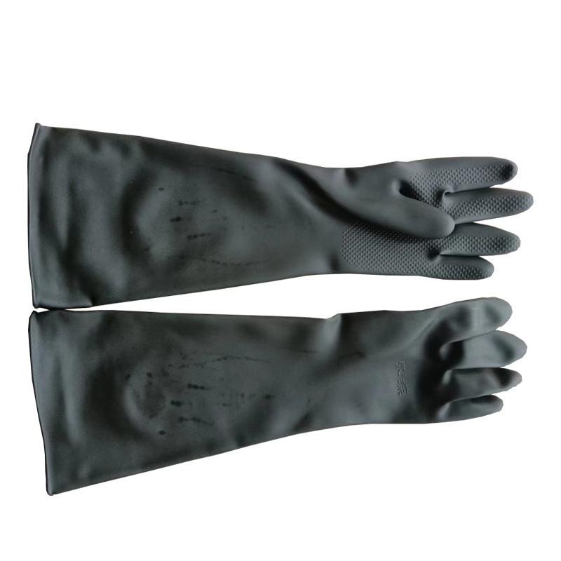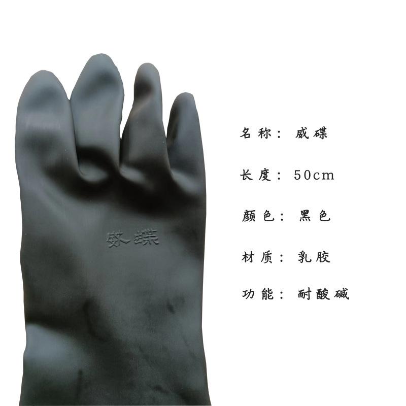 工业黑色乳胶手套威碟50厘米加厚耐酸碱手套卷边防化手套