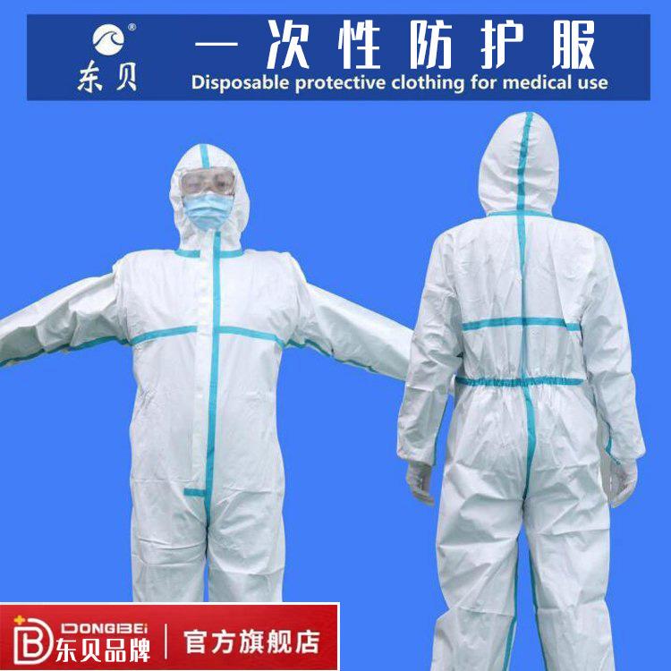 东贝一次性防护服连脚透气大白服现货 65g日常用蓝色胶条隔离衣服 |