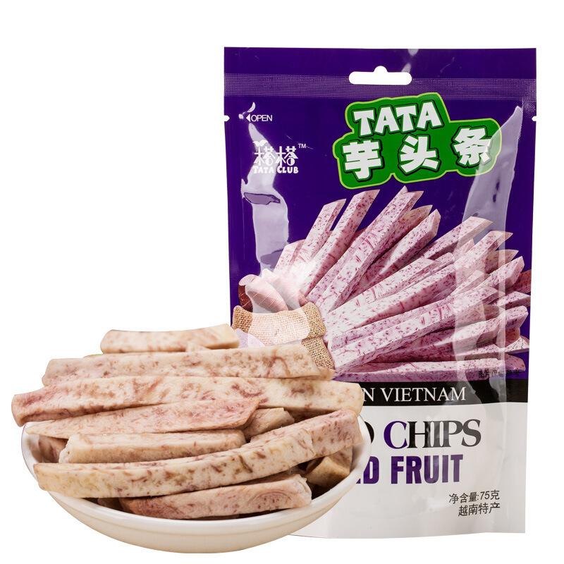 保质期:365天|产品标准号:TT75|是否进口:是|产品类别:果干|原产国/地区:越南|品牌:榙榙|生产厂家:MEKONGFRUITCO.,LTD|原料与配料:详情见外包装|售卖方式:包装|生产日期:最新日期,不断更新|储藏方法:干燥处储藏|商品条形码:8936094341076|净含量(规格):75g|货号:TT75S|包装规格:榙榙芋头条|热卖月份:全年|包装系列:简装系列|储存条件:常温|制作工艺:烘培|产品认证:否