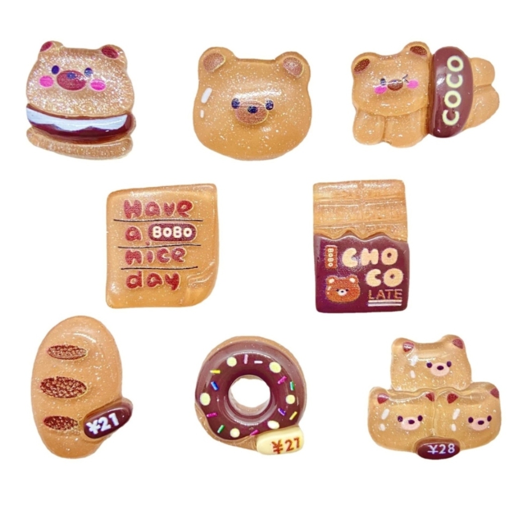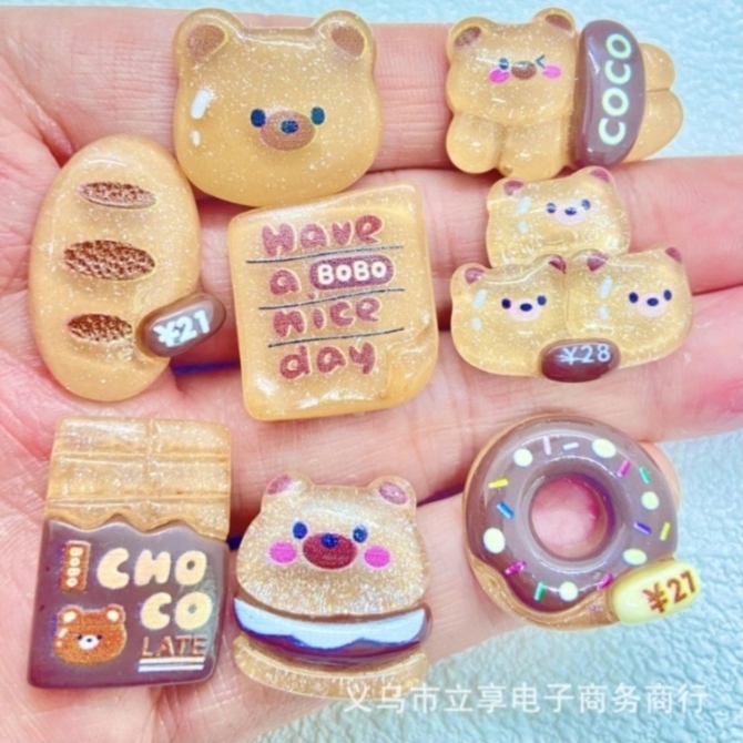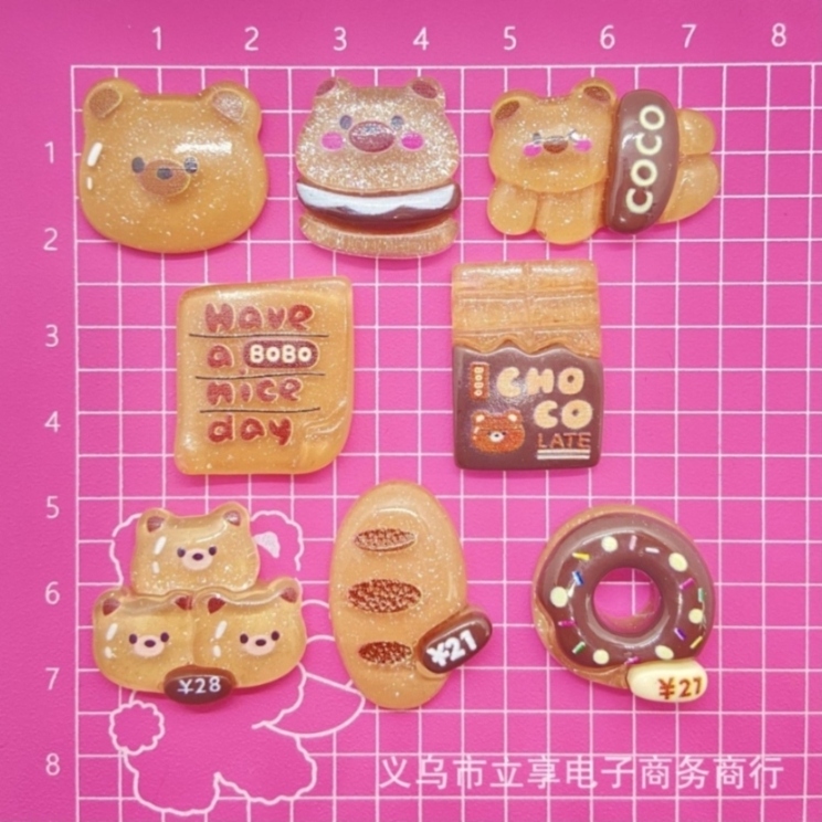 咖色小熊便利店diy树脂配件手工仿真滴胶鞋服饰品材料贴片甜甜圈 |