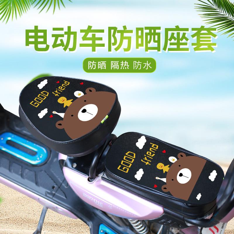 电动车坐垫套小型电瓶自行车夏季防晒防水四季通用卡通款皮革座套 |