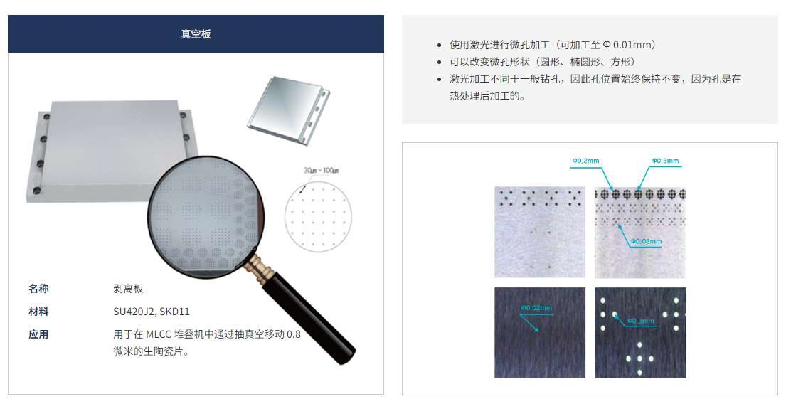21世纪有限公司生产用于MLCC和半导体领域的各种精密真空板。 工业真空板的吸孔大,容易损坏物体,因此对由细孔组成的精密真空板的需求越来越大。如果孔较大,则需要由微孔制成的真空板,因为在薄膜等薄片型产品的情况下,可能会发生产品损坏或压花。 因此,在21世纪,由Ø0.1到Ø0.03的微孔制成的高精度真空板正在制造并供应给工业现场。在半导体领域,大量使用多孔陶瓷制成的真空板,但由于颗粒大小,在高平整度和均匀压力管理方面存在不稳定性,因此真空板在21世纪的重要性是上升。 虽然根据标准的大小有所不同,但我们正在制造和提供最高质量和性能的真空板,通过 0.001 的平面度管理和高达 Ø0.03 的精确吸孔管理来满足客户的需求。 |