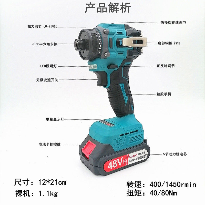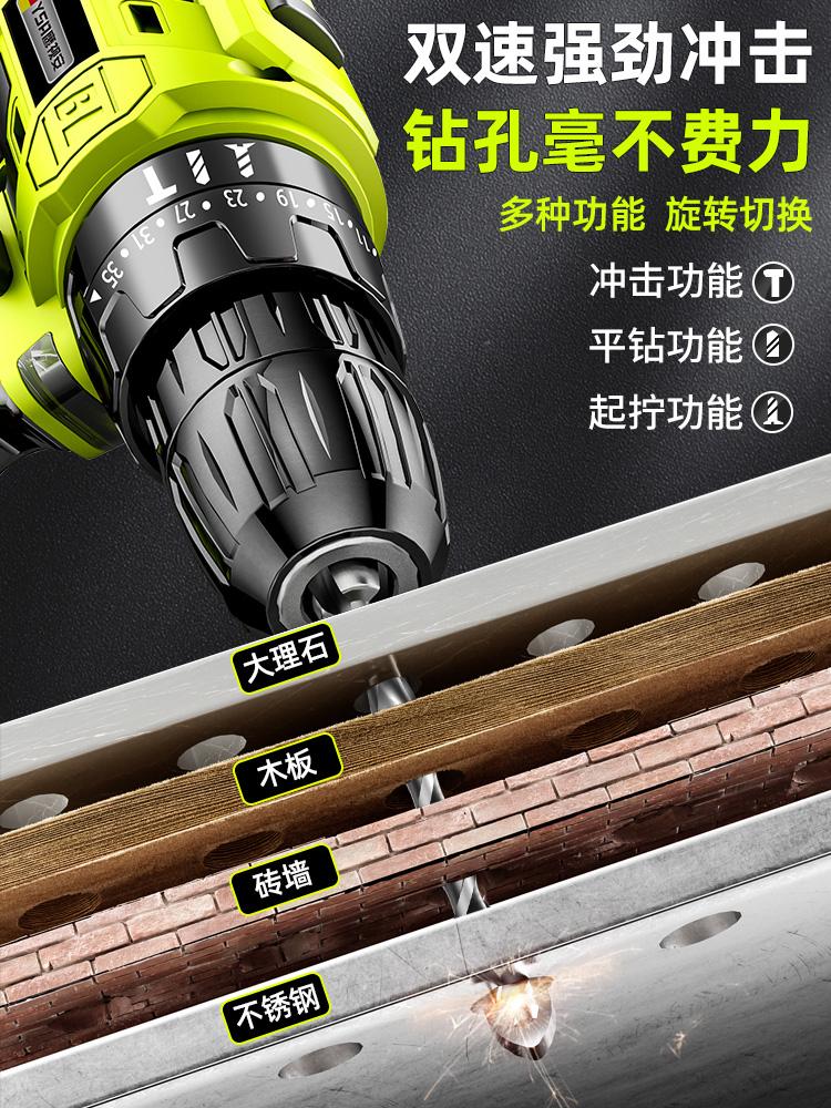 手电钻冲击钻转家用无刷钻锂电工具多功能电锤充电式电动螺丝刀