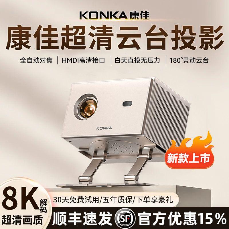 品牌:[KONKA/康佳]|产品类型:[家庭影院]|屏幕比例:[16:9]|分辨率:[1920x1080dpi]|产地:[中国大陆]|3C认证证书编号:[2023200903000479]|工作原理:[LCD]|操作系统:[安卓系统]|适用场合:[会议室, 卧室, 家庭]|最佳投放距离:[2m]|机身尺寸:[215X155X135mm]|灯泡功率:[80W]|灯泡寿命:[20000小时及以上]|影片效果:[默认2D(可支持红蓝3D)]|光源功率:[80W]|梯形校正范围:[四向校正]|是否带电池:[无电池]|投影焦距类型:[长焦]|光源类型:[LED灯]|附加功能:[WIFI, 蓝牙, 自动梯形校正]|最大兼容分辨率:[1920x1080dpi]