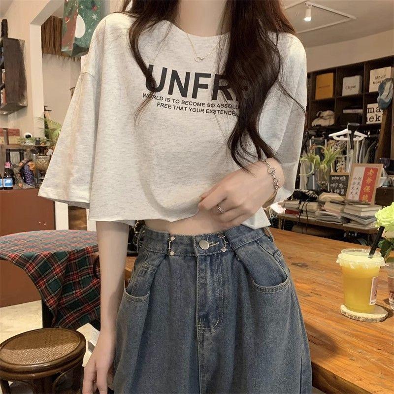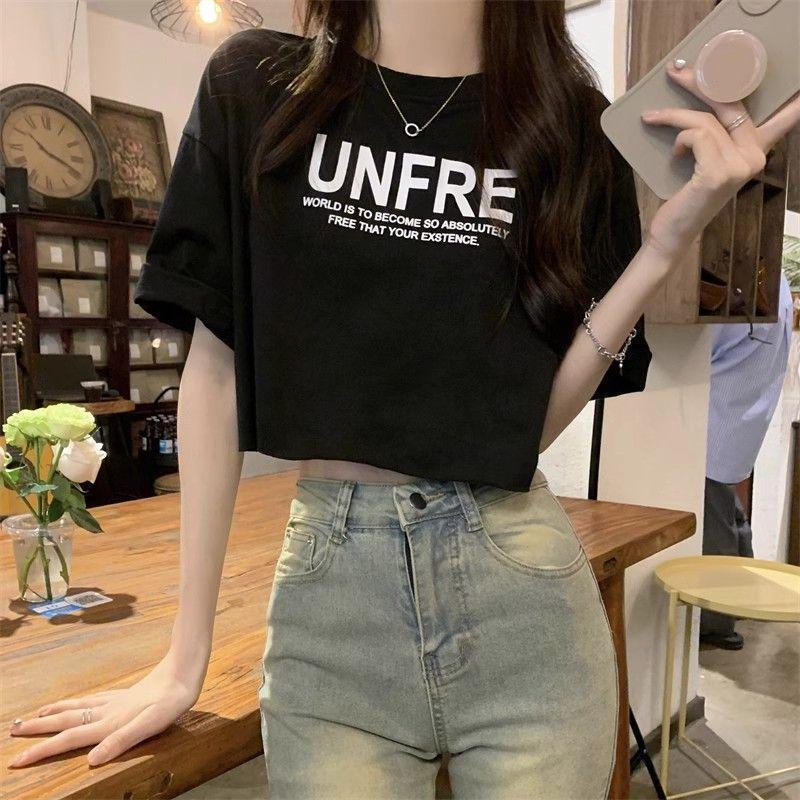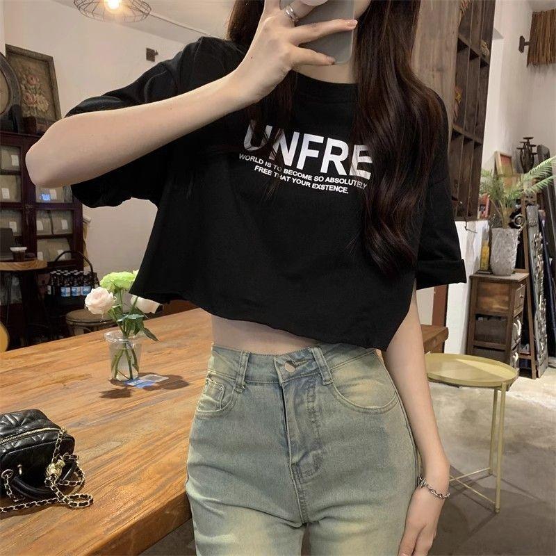 港味小众短袖学生T恤夏季新款宽松百搭高腰短款辣妹百搭上衣ins潮