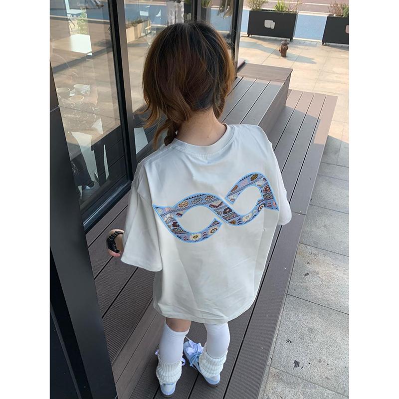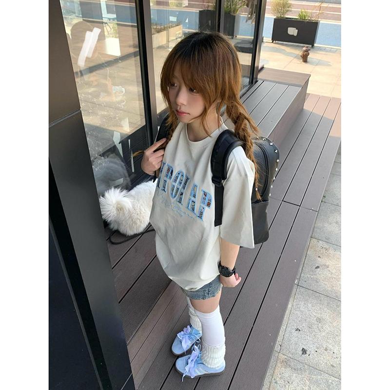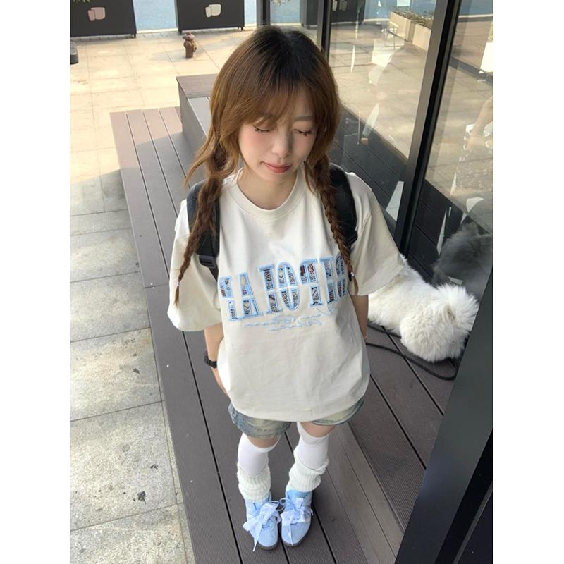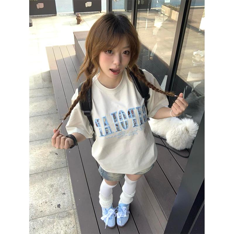 美式高街短袖t恤女男闺蜜2025新款夏季印花白色字母上衣服ins潮流