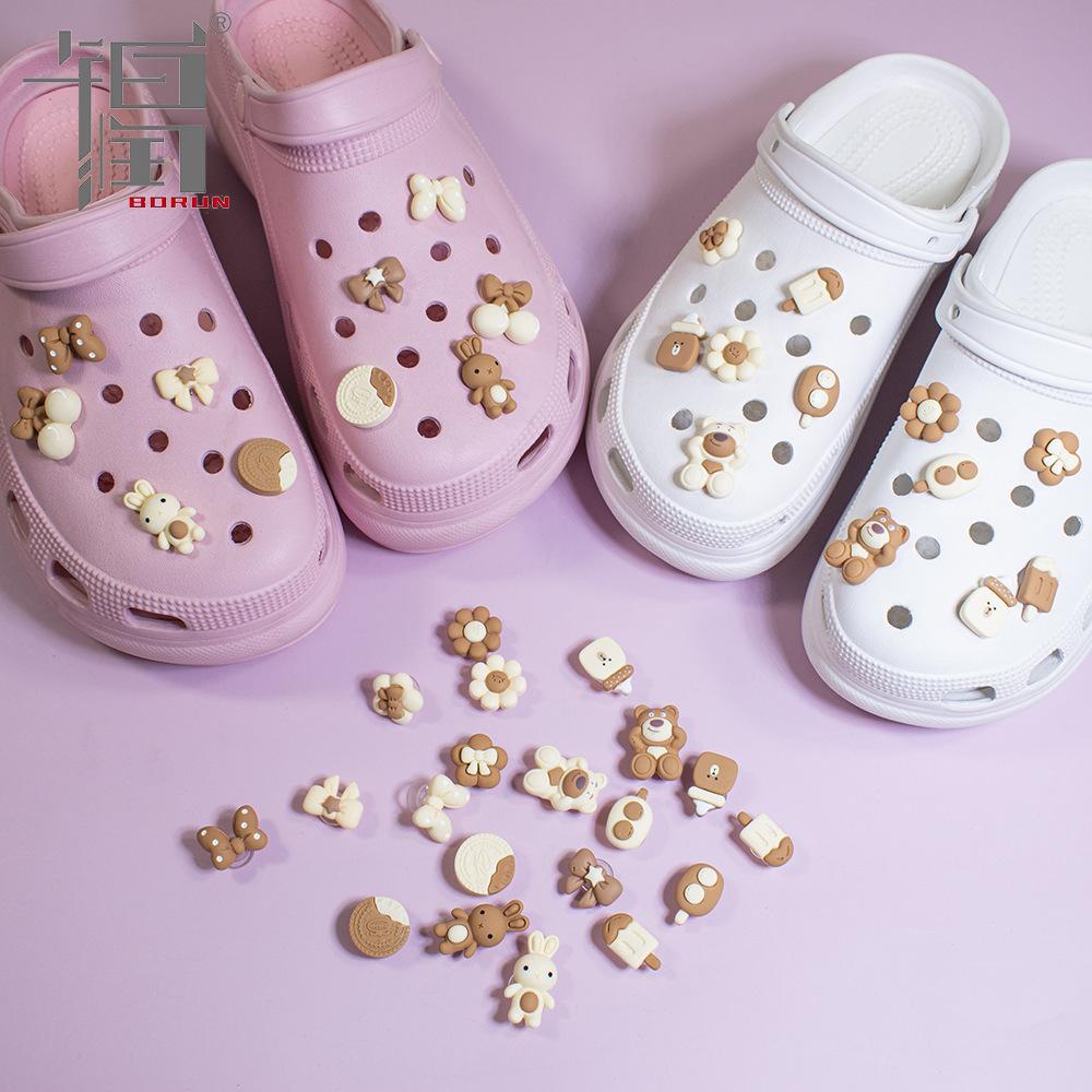 可爱奶茶色系列洞洞鞋饰品配件 小熊花朵diy奶油滴胶手机壳美容