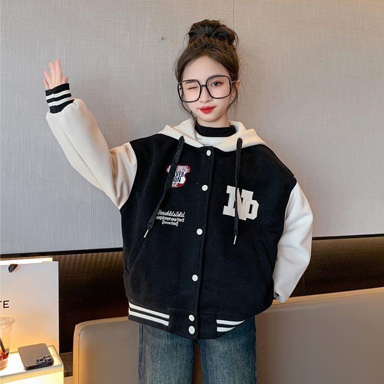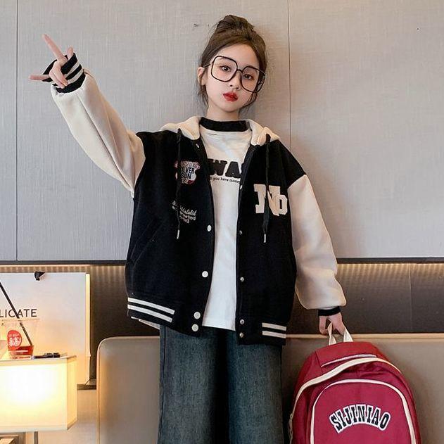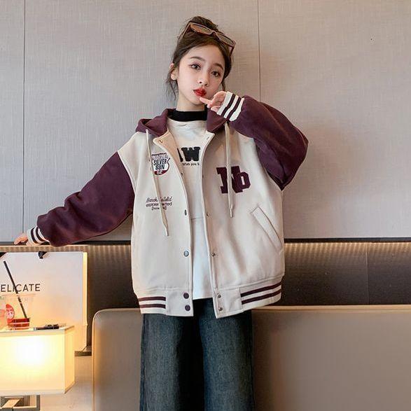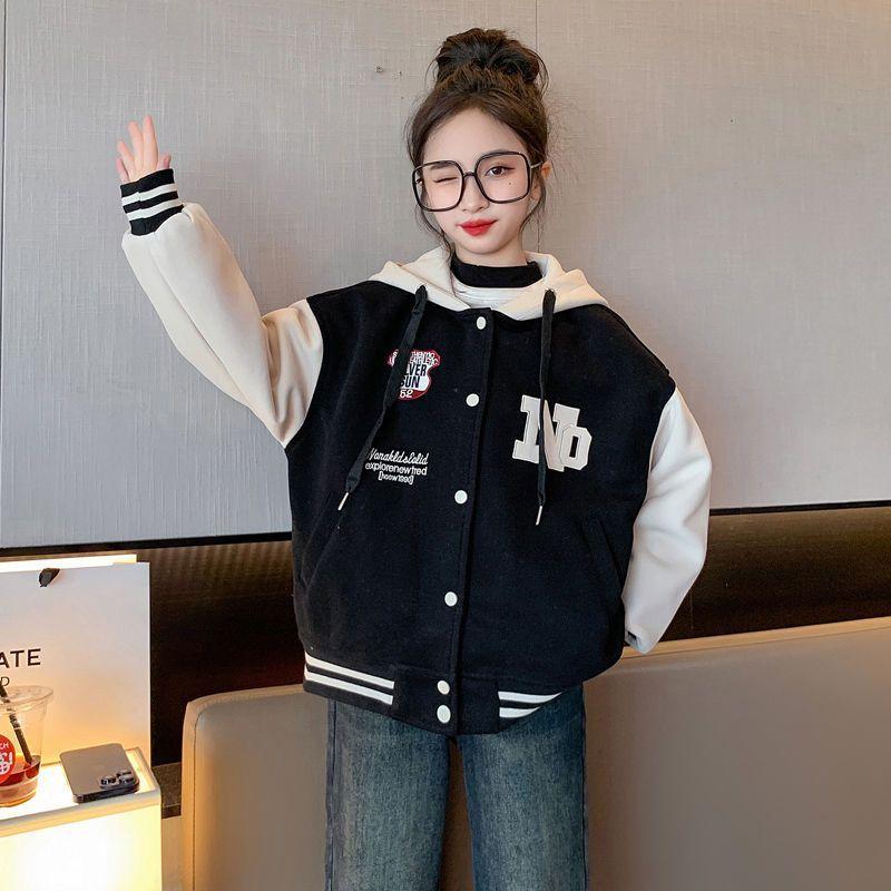品牌:[尚嘉慧]|面料/材质:[其它/棉]|适用性别:[女]|衣门襟:[单排扣]|流行元素:[纽扣, 拼接, 绣花]|厚薄:[薄款]|适用季节:[春秋]|图案:[字母]|风格:[学院]|领型:[连帽]|适用年龄段:[14岁以上, 3岁(含)—6岁(不含), 8岁(含)—14岁(不含), 6岁(含)—8岁(不含)]|上市时节:[2025年春季]|衣长:[常规款]|成分含量:[51%(含)—70%(含)]