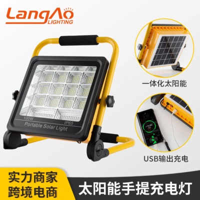 充电投光灯太阳能led手提应急探照灯投射户外便携USB手机充电