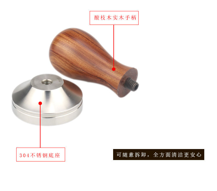 实木柄304不锈钢底座压粉器58mm 咖啡压粉锤平底填压器咖啡压粉器 |