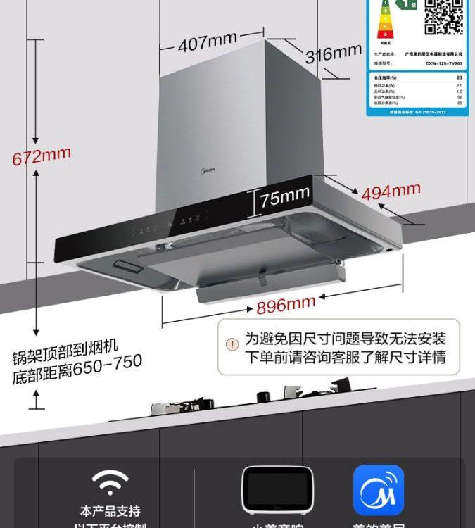 上海美的TV703油烟机厨房家用大吸力十年包修抽油烟机智能自 |