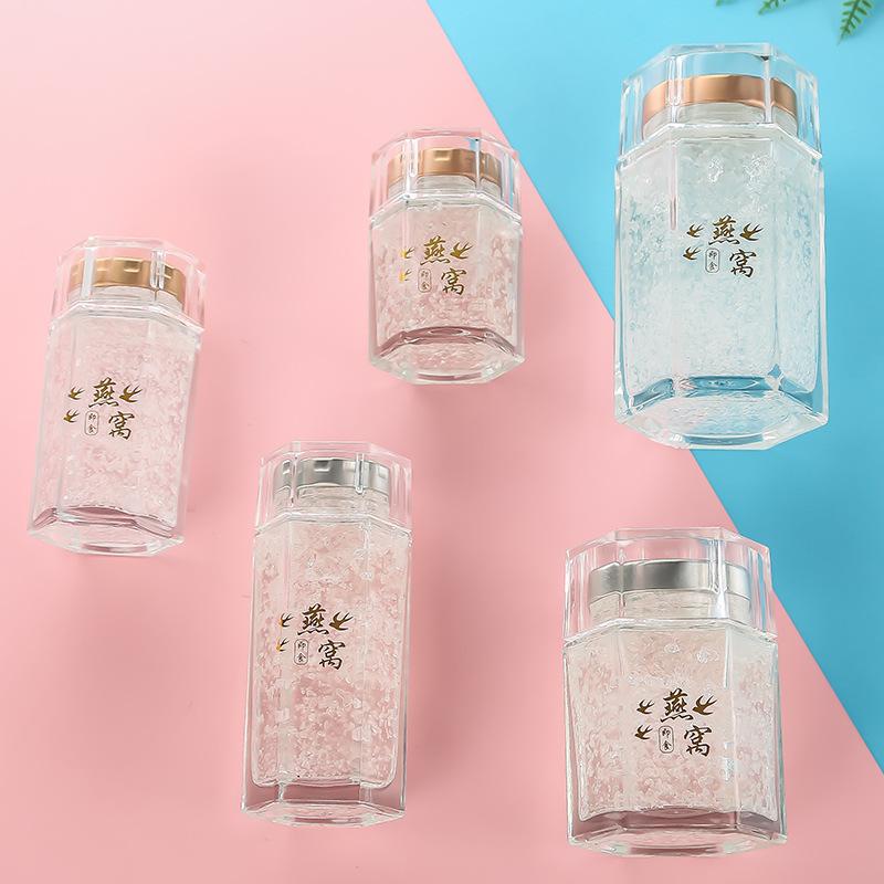 批发六棱即食燕窝瓶密封玻璃瓶分装瓶带盖六角储物罐蜂蜜瓶燕窝瓶 |