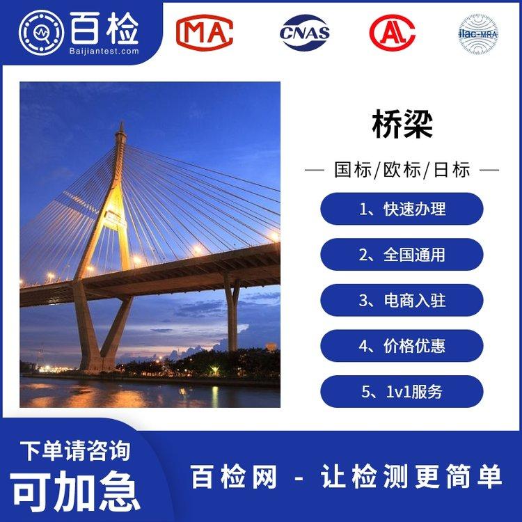 品牌:百检|检测类型:桥梁|检测地点:实验室遍布全国,就近分配|检测周期:加急最快1.5个工作日(特殊样品除外)|报告资质:CMA、CNAS、CAL|样品要求:样品支持快递取送、上门采样,数量及规格等视检测项而定|可售卖地:北京;天津;河北;山西;内蒙古;辽宁;吉林;黑龙江;上海;江苏;浙江;安徽;福建;江西;山东;河南;湖北;湖南;广东;广西;海南;重庆;四川;贵州;云南;西藏;陕西;甘肃;青海;宁夏;新疆