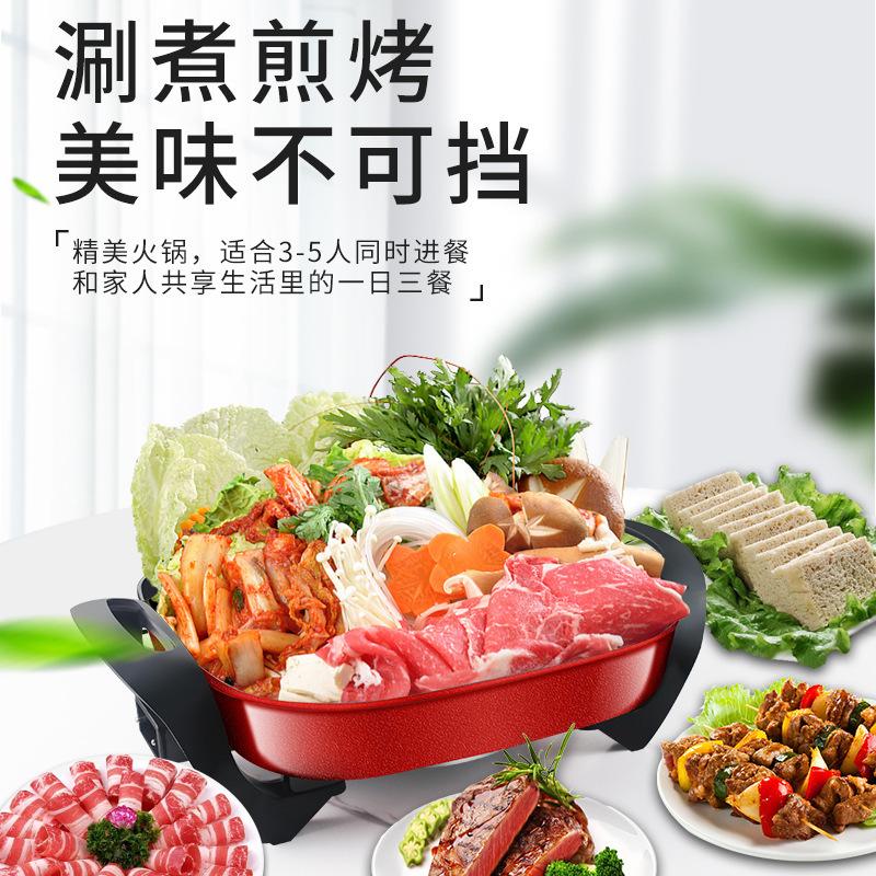 韩式多功能电火锅红双喜四方锅5L家用电热锅电器礼品锅电炒锅电锅 |