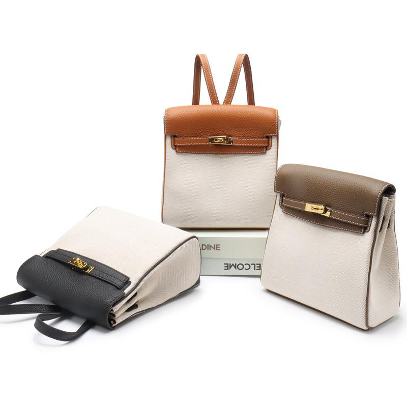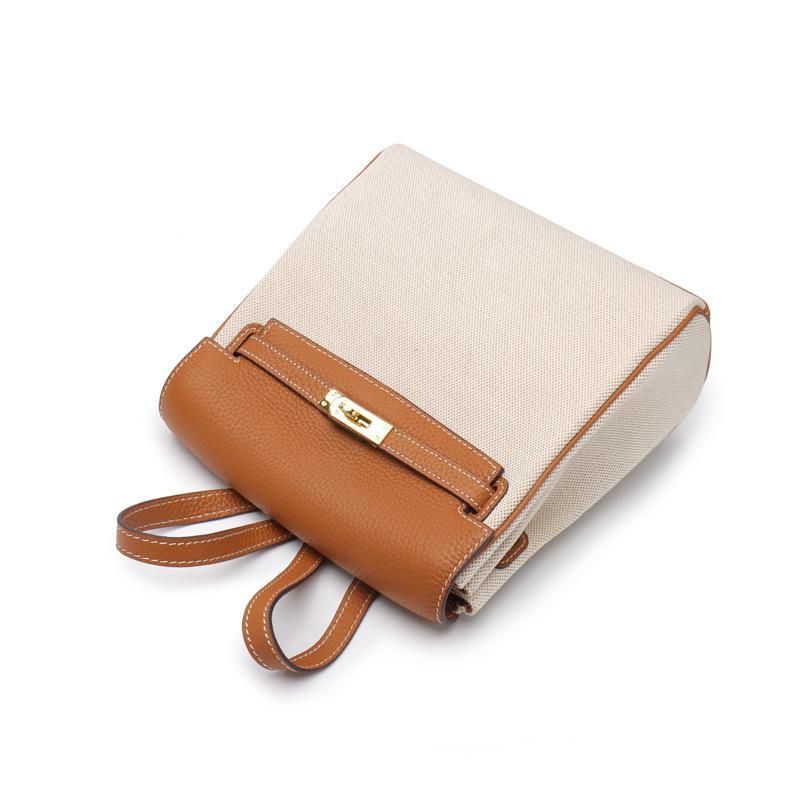新款凯莉双肩背包帆布配头层牛皮欧美时尚款真皮女包学生旅行背包 |