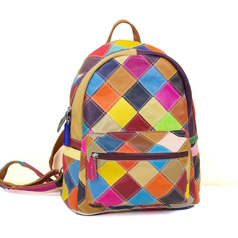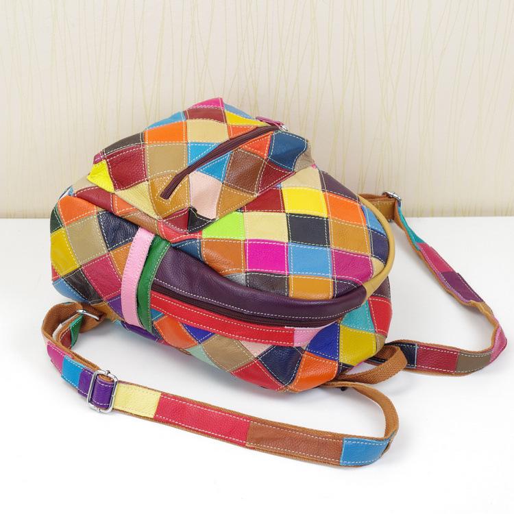 跨境真皮女包一件代发新款头层牛皮手工包彩色撞色背包女士双肩包 |