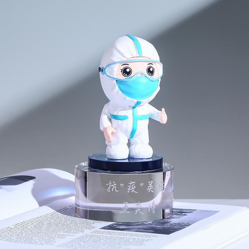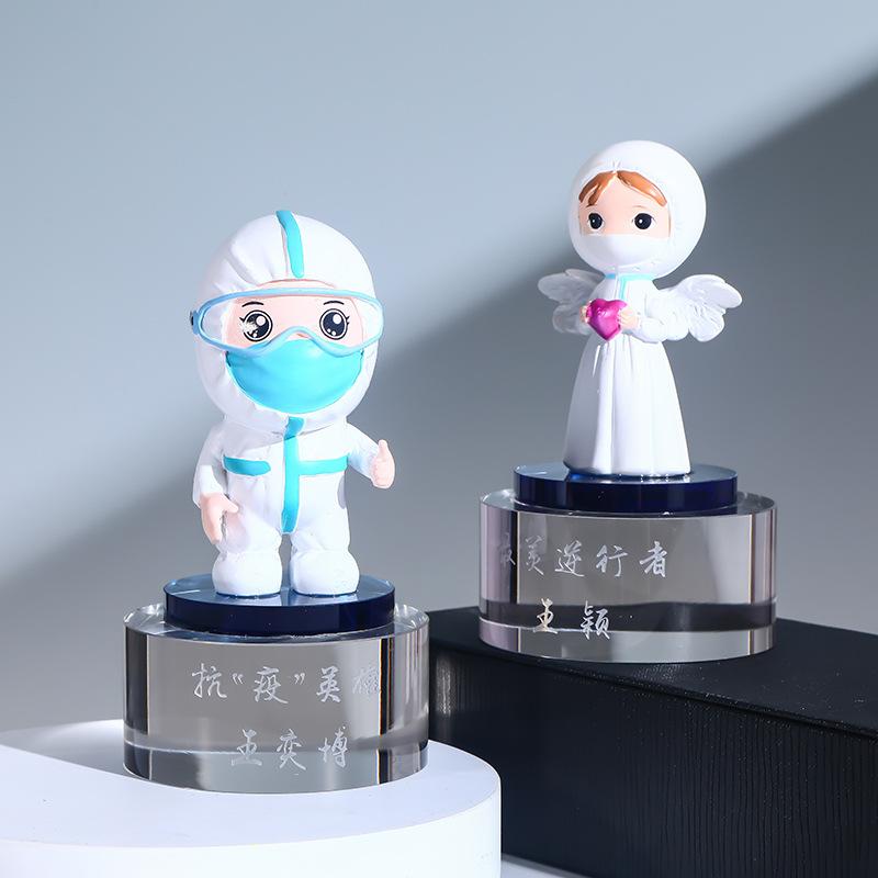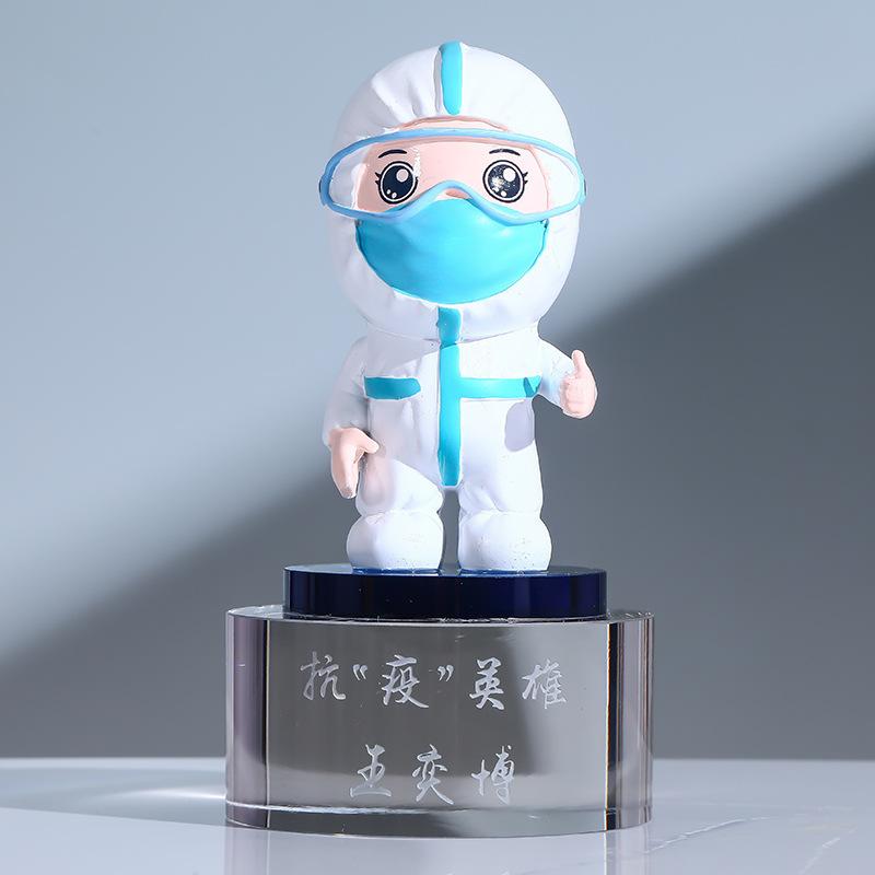 抗击疫情志愿者奖杯制作逆行者医生大白护士爱心防疫荣誉纪念礼品