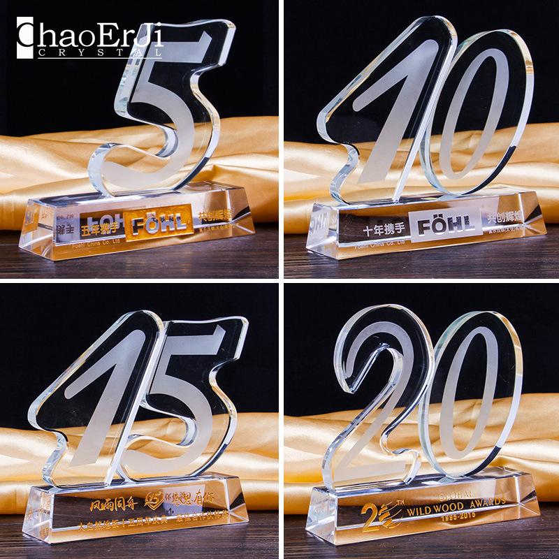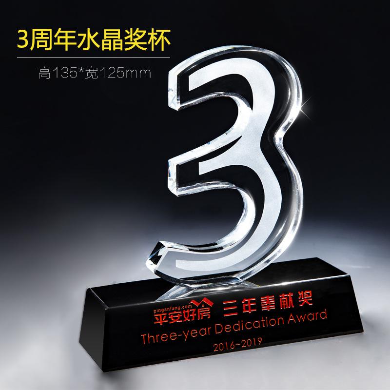 水晶数字奖杯 5/10/15/20/30周年十佳员工刻字姓名颁奖牌礼品 |