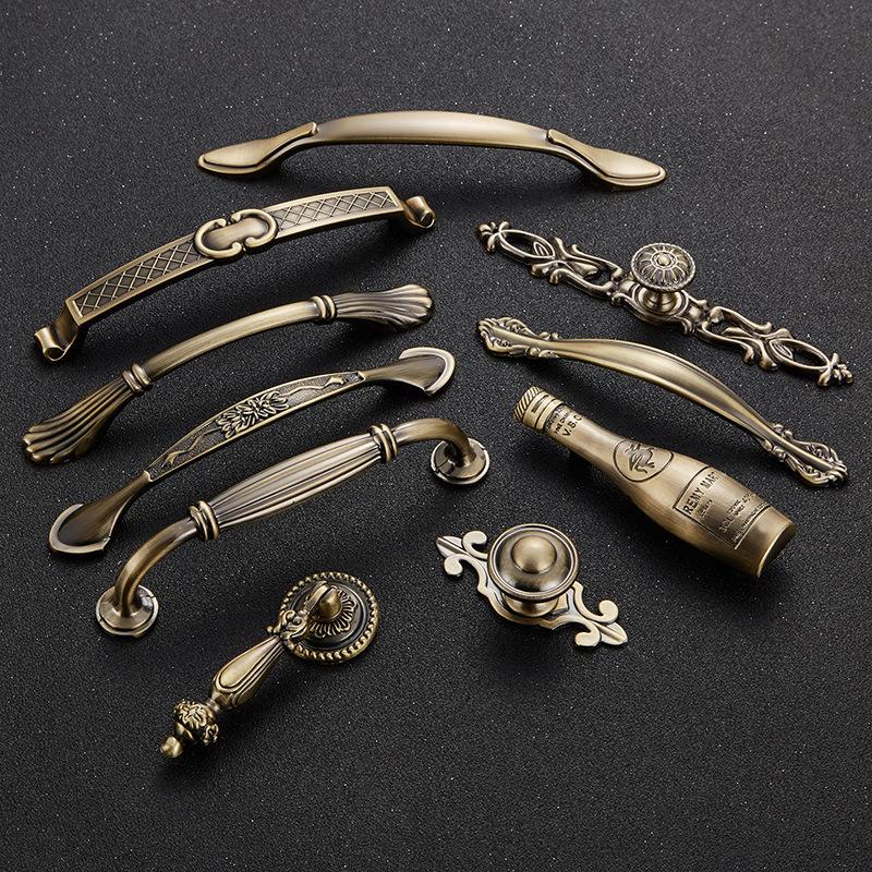澳拉雅 古铜欧式柜门抽屉锌合金简约衣橱柜家具单孔青古拉手把手 |