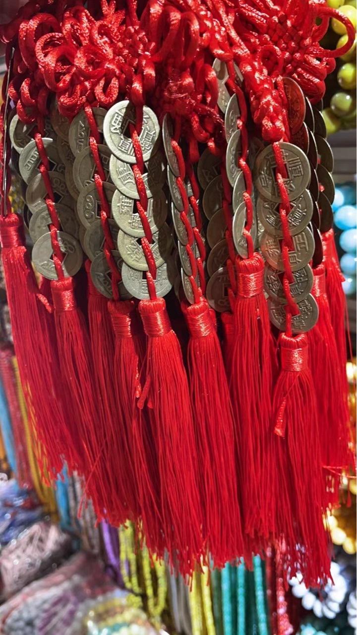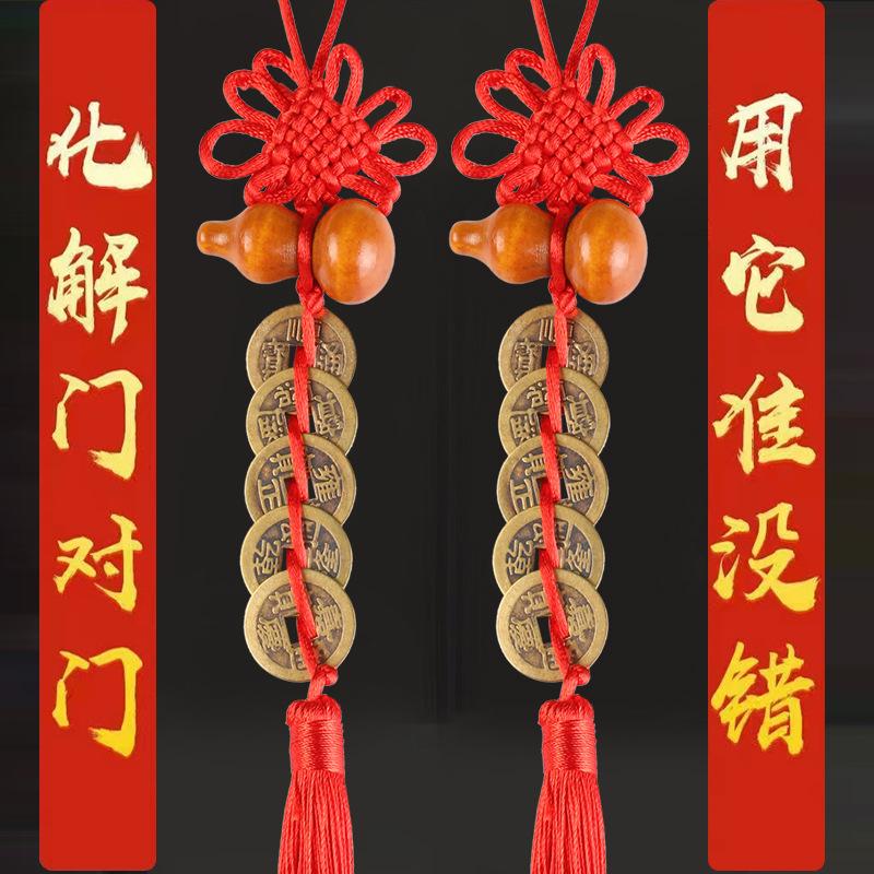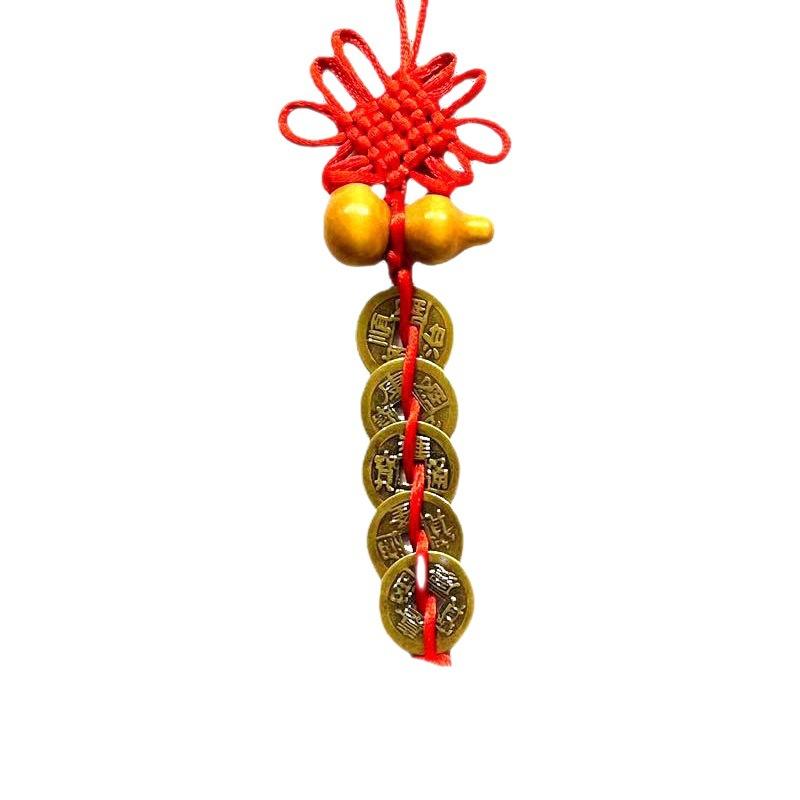 五帝钱挂件真铜装饰车载内饰汽车吊坠后中国结六帝铜钱纯铜摆地摊 |