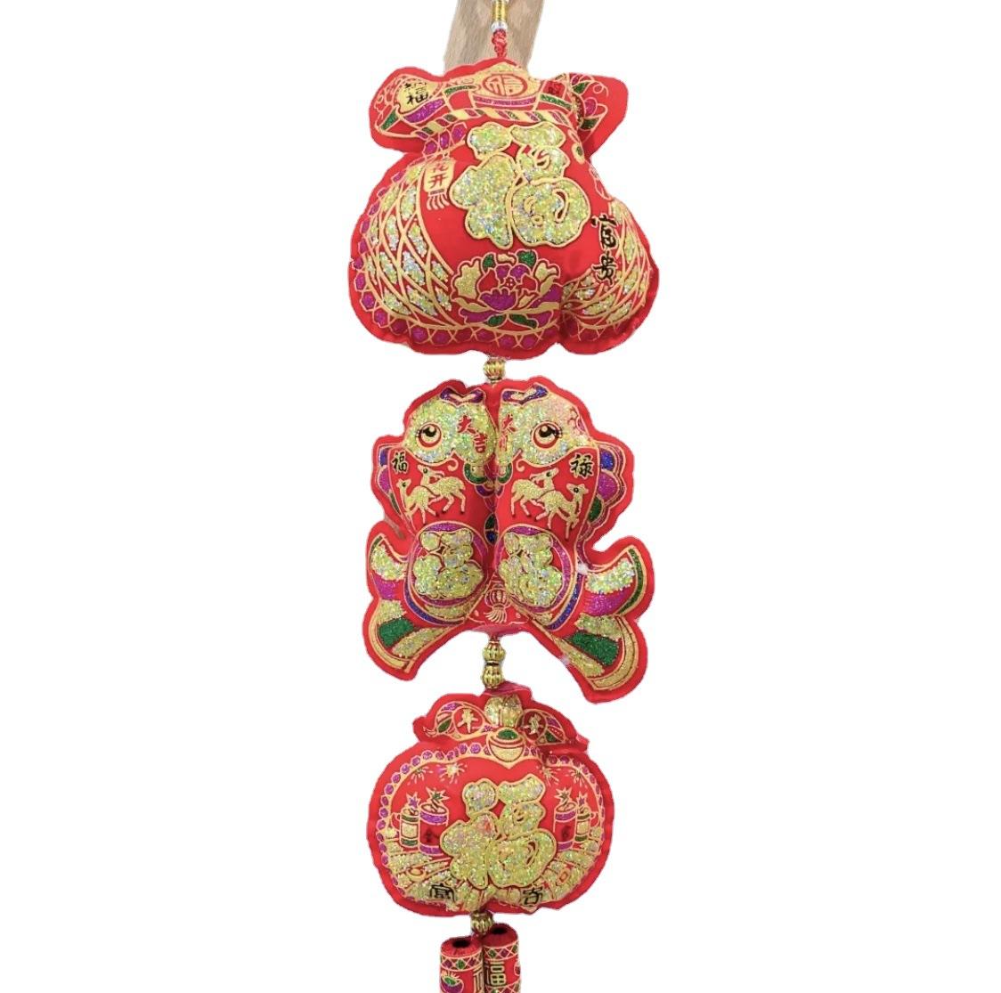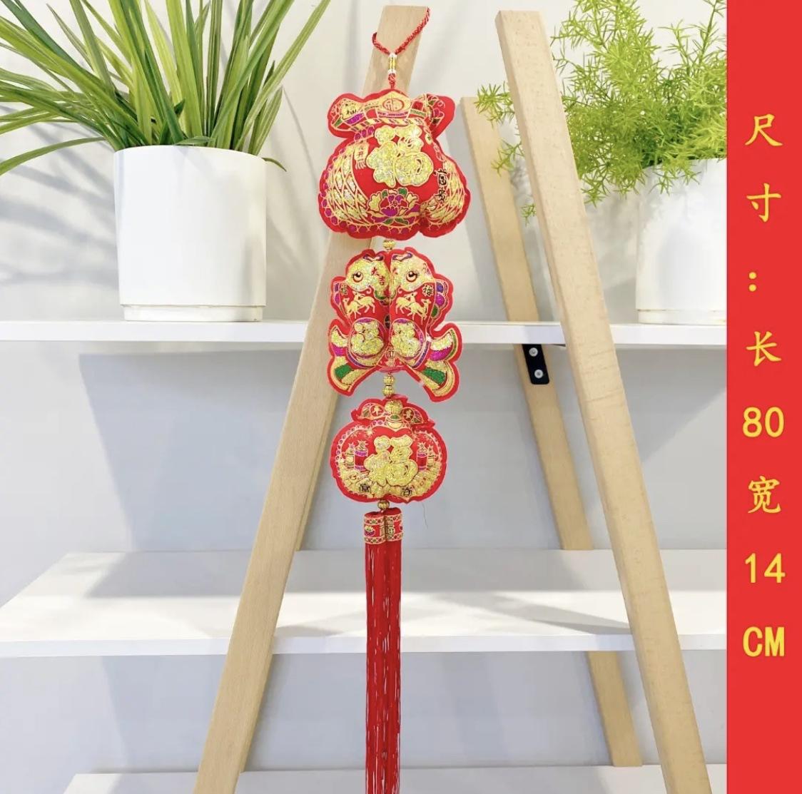 中国结厂家直销2023新款钱包双鱼苹果三连挂件客厅玄关植绒流苏 |