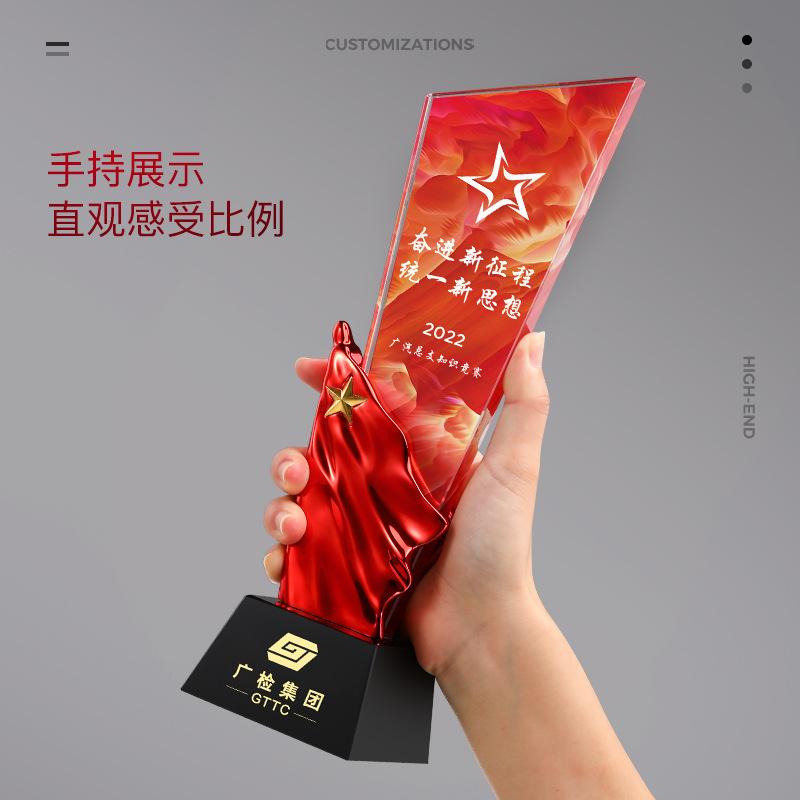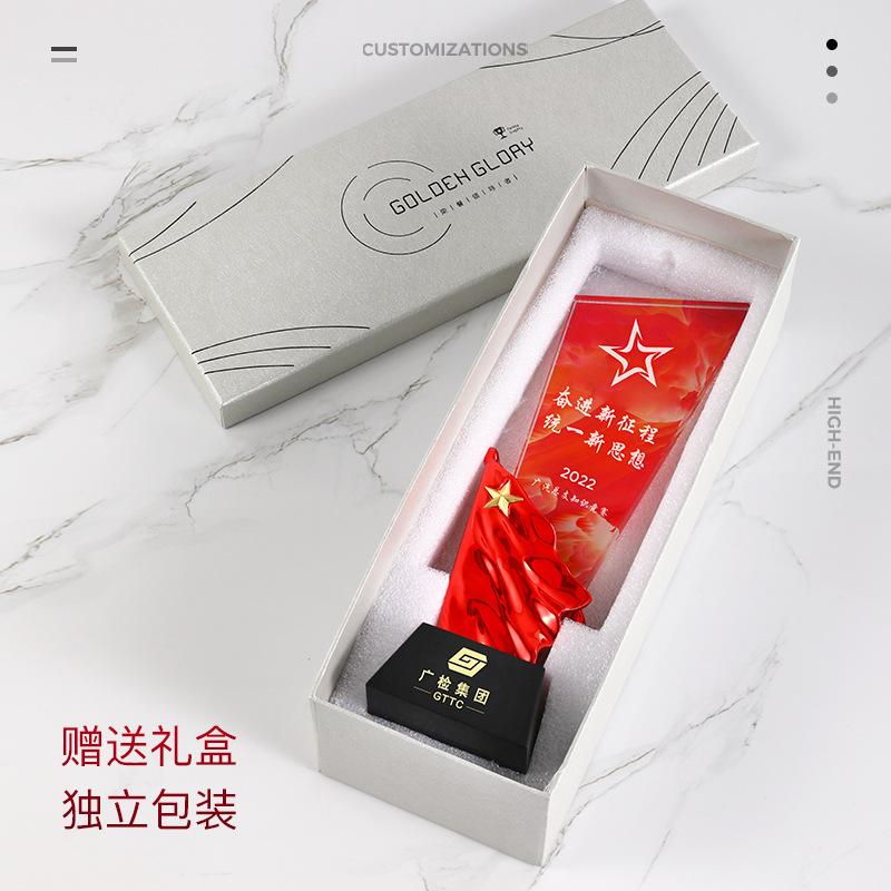 创意八一水晶奖杯制做退伍五角星纪念品颁奖优秀党员锦旗奖杯 |