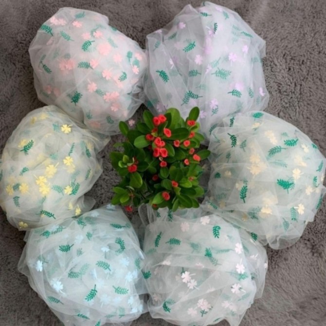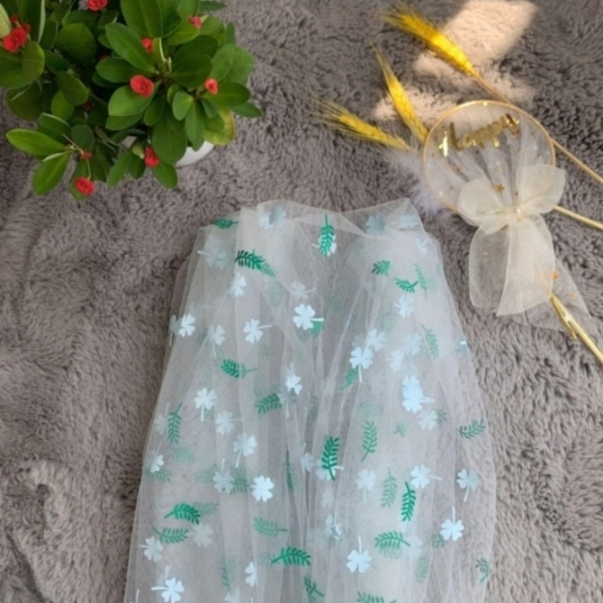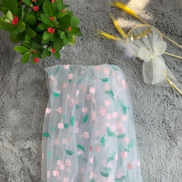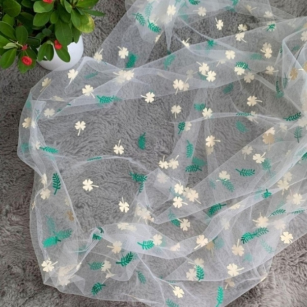 网眼布后加工绿叶小花胶浆印花特密网眼布 小花胶浆童装汉服面料 |
