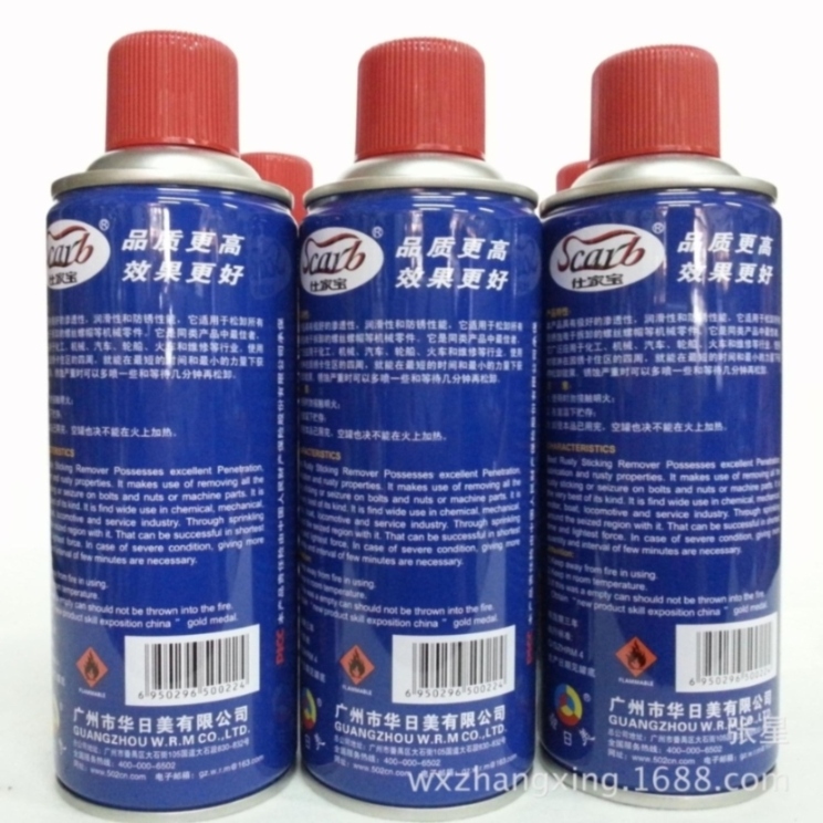 产地:广东|是否进口:否|执行标准:Q/GZHRM4|货号:松锈大王|主要用途:松缷所有因锈蚀难于拆卸的螺丝螺帽等机械零件|类别:油性防锈油|代号:无|品牌:仕家宝|产品规格:450ml|形态:喷雾|系列:除锈剂|型号:松锈大王|耐温范围为:常温|产品特性::润滑性和防锈性能好|产品名称:松锈大王|订货号:松锈大王|产地:广东|是否进口:否|执行标准:Q/GZHRM4|货号:松锈大王|主要用途:松缷所有因锈蚀难于拆卸的螺丝螺帽等机械零件|类别:油性防锈油|代号:无|品牌:仕家宝|产品规格:450ml|形态:喷雾|系列:除锈剂|型号:松锈大王|耐温范围为:常温|产品特性::润滑性和防锈性能好|产品名称:松锈大王|订货号:松锈大王