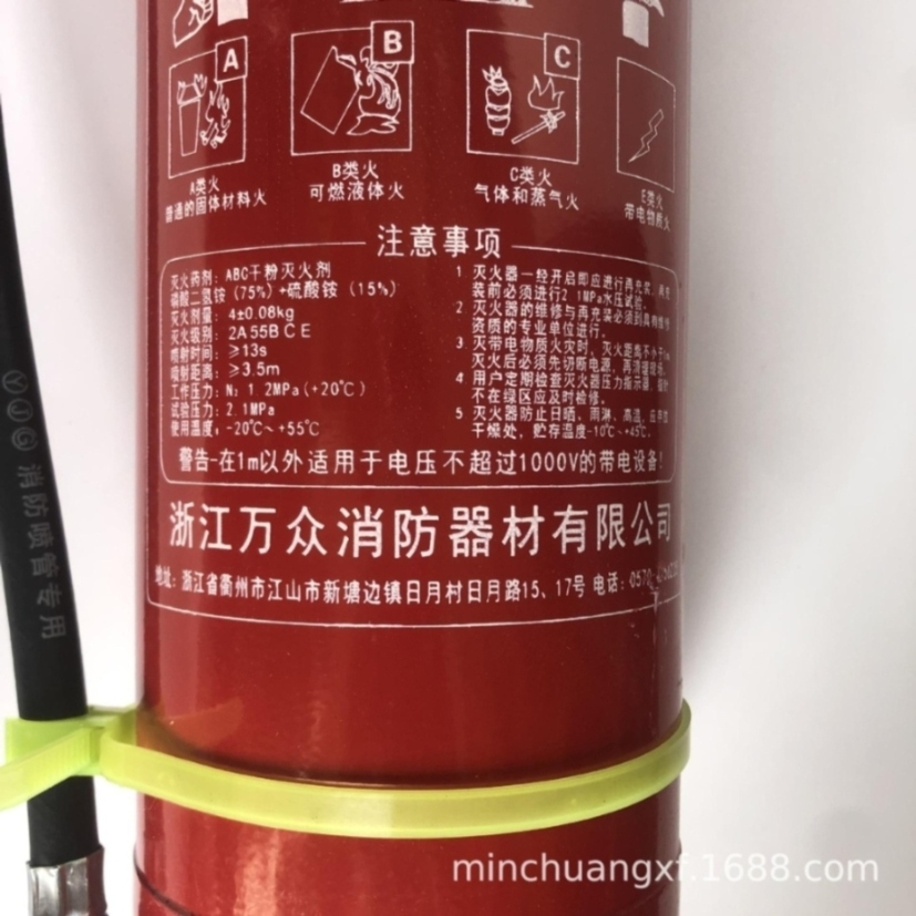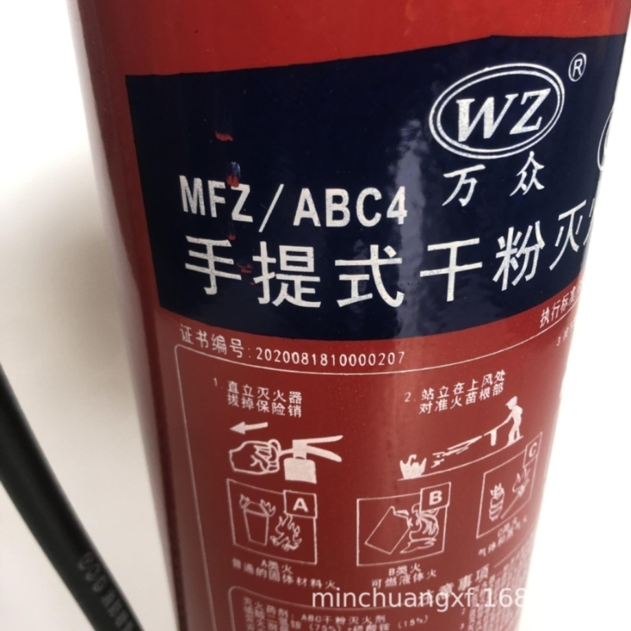 是否进口:否|品牌:万众|型号:MFZ/ABC4|类型:手提式灭火器|灭火剂类型:干粉灭火器|3C证书编号:2020081810000207|是否进口:否|品牌:万众|型号:MFZ/ABC4|类型:手提式灭火器|灭火剂类型:干粉灭火器|3C证书编号:2020081810000207
