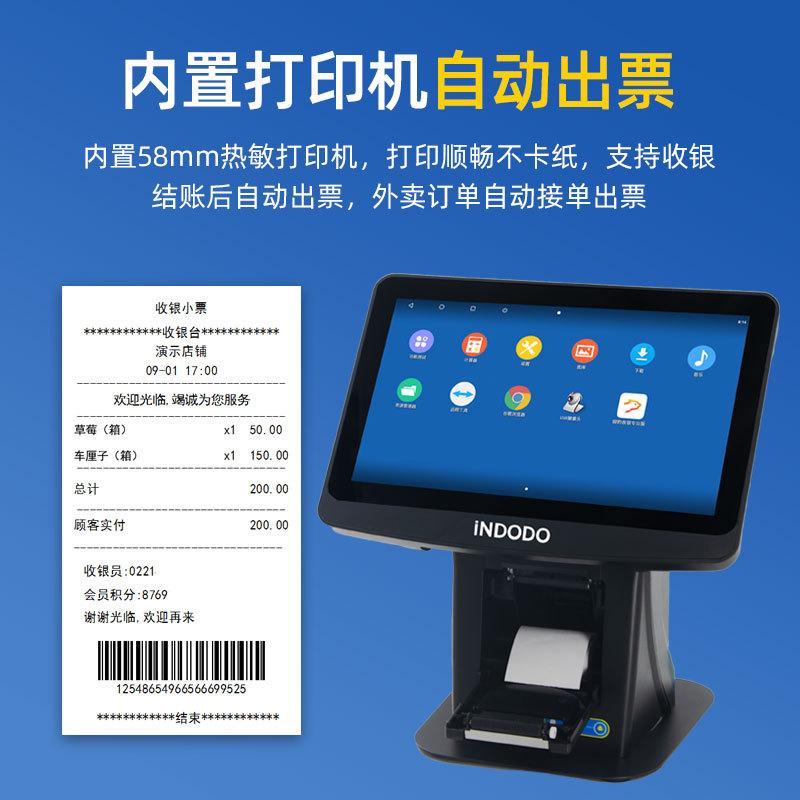 货号:M102/M102L|品牌:INDODO|鉴别能力:安卓Android|型号:M102【精巧机身 高性价比】,M102L【升级机型 配置丰富】|电压:12V-5A|容量:2+16G|类型:智能触控收银机|触摸屏:11.6寸电容屏|打印机:内置58mm热敏小票打印机|系统:安卓7.1
