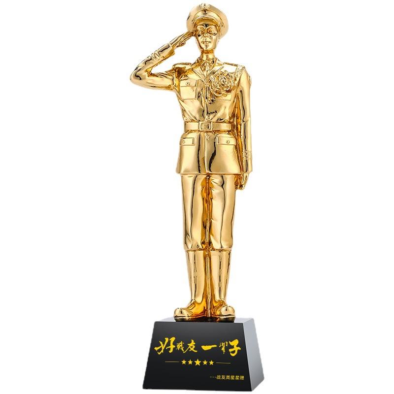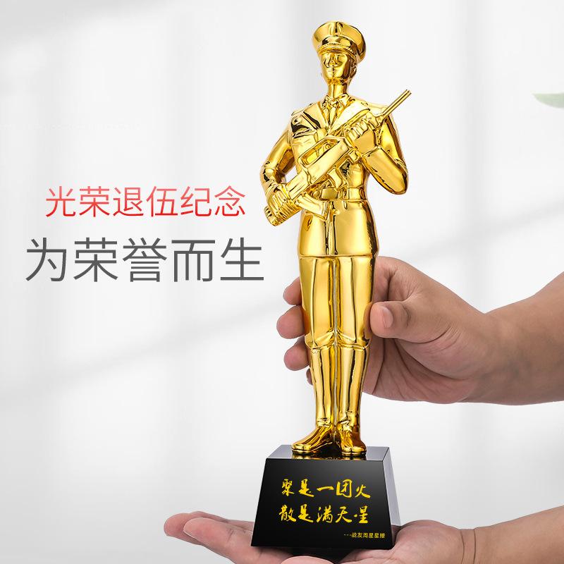 退伍军人纪念礼品送战友退役部队军旅八一老兵树脂留念小金人奖杯 |