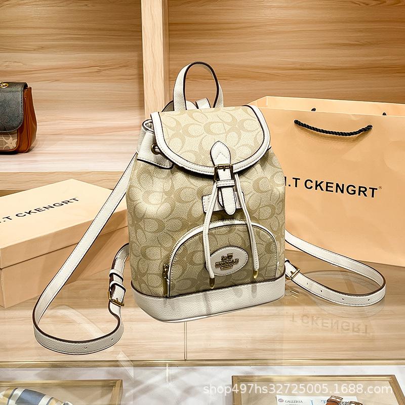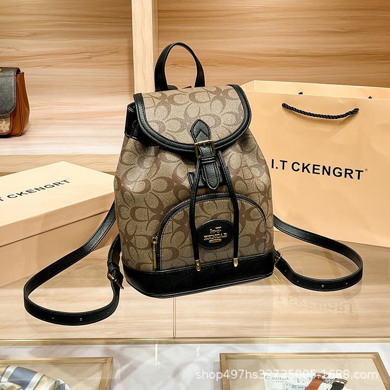 香港正品双肩包包女2023新款时尚包老花真皮书包牛皮简约旅行背包