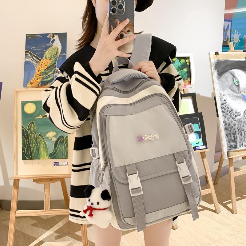 韩国ins复古撞色百搭书包女奶油风初高中学生大容量双肩包休闲包 |