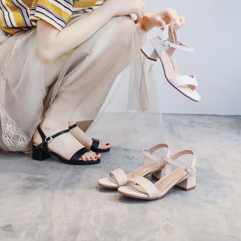 凉鞋女2023新款百搭一字扣带粗跟中跟露趾韩版夏季凉鞋高跟女鞋 |