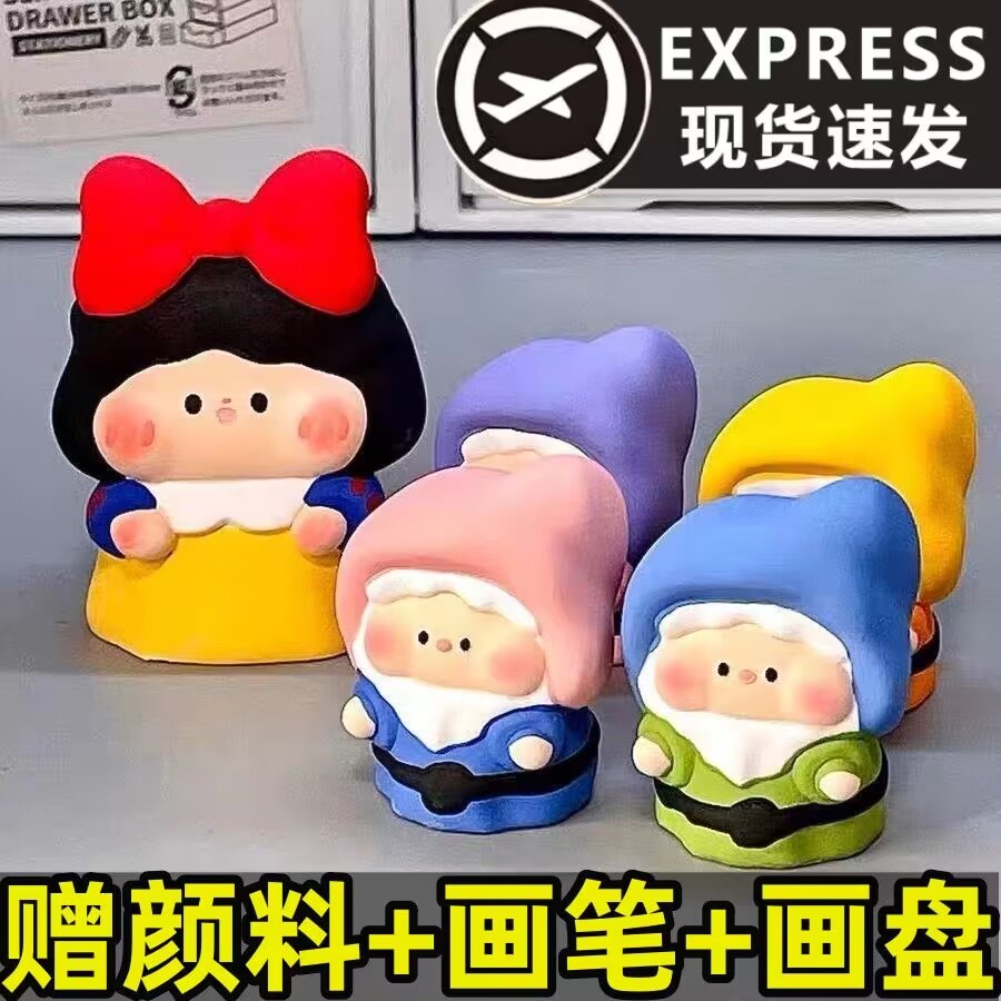 白雪公主与小矮人石膏娃娃涂色摆件儿童手工diy创意摆地摊批发价