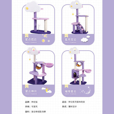 货源类别材质:剑麻+复合羊绒圈|产地:江苏|是否进口:否|产品类别:啃咬玩具|货号:2102SPDL0309|箱装数量:1|重量:11|品牌:神经猫|是否专利货源:否|颜色:星点孤云(三层款带2跳台+逗猫球),星月双云(四层款带猫窝+2跳台),云捧星月(五层款带3猫窝+3跳台),璀璨星云(豪华六层带4猫窝+3跳台+逗猫球)|主要下游平台:ebay,亚马逊,wish,速卖通,独立站,LAZADA|主要销售地区:欧洲,南美,东南亚,北美,东北亚,中东|有可授权的自有品牌:是|是否跨境出口专供货源:是|是否属于礼品:否|是否IP授权:否。