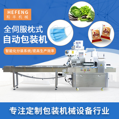 全自动枕式包装机口罩面包蔬菜月饼糖果食品装袋封口机伺服包装机