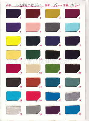 货源类别品质标准:欧洲标准协会(EN)|别名:32支精棉拉架食毛|成分及含量:95%棉5%氨纶|经纬编:经编|纱支:32S|克重:190(g/㎡)|幅宽:175cm|梳棉工艺:精梳|织造工艺:单面|染整工艺:染色|具体用途:T恤,休闲服,睡衣、内衣|货号:182|使用季节:夏,春,秋|花型工艺:扎染|品牌:翔泰|颜色:红色,酒红色,桔色,粉红色,绿色,军绿色,浅绿色,蓝色,深蓝色,天蓝色,黄色,浅黄色,巧克力色,紫色,深紫色,灰色,米色,黑色,白色,花色|是否跨境出口专供货源:否。