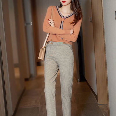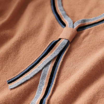 v领撞色飘带针织衫打底衫上衣2021春装女新款时髦韩版宽松长袖T恤 |